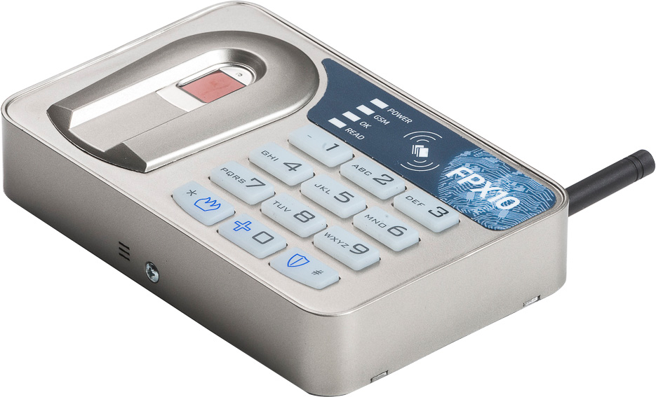 Lector de huellas con GPRS y RFID. Le permite controlar el tiempo de trabajo del personal. Transmisión GSM/GPRS/SMS.