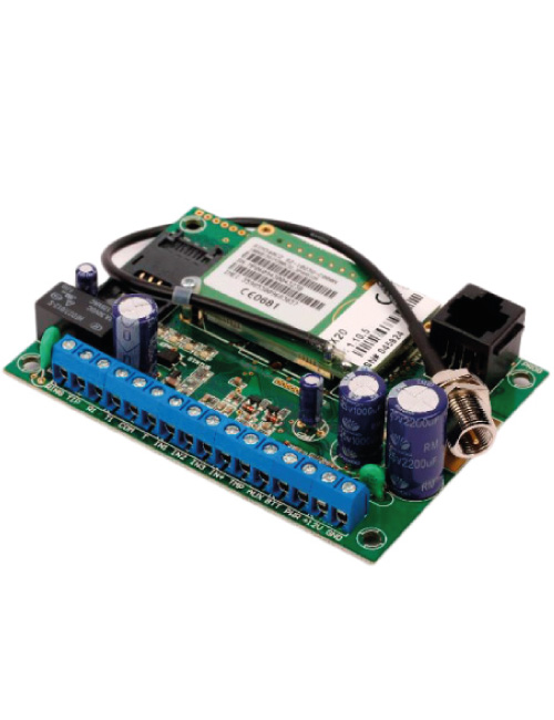 Transmisor Universal 3G compatible con cualquier sistema de alarma, soporta protocolo CID, transmisión 3G/GPRS/SMS. 5 entradas y 2 salidas. Modem 4 GSM / 5 UMTS.